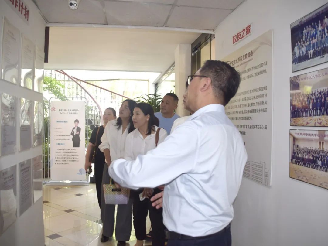 在副会长的介绍下,大家先后参观了校友会荣誉墙、文化长廊、党支部等。